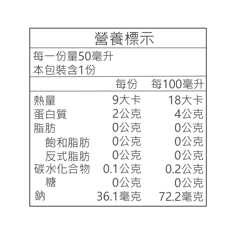• 營養標示